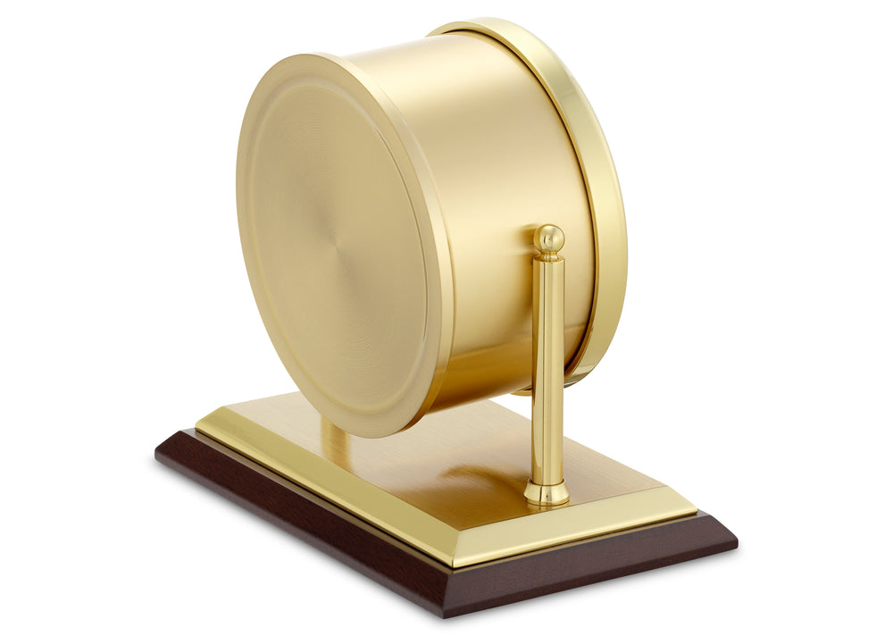 The Chatham makes a dramatic statement, combining the brilliance of highly-polished, forged brass with a stunning, felt-lined mahogany base. This 3.5" dial attractive piece features a swivel-style case, richly silvered dial, and a reliable German quartz movement.