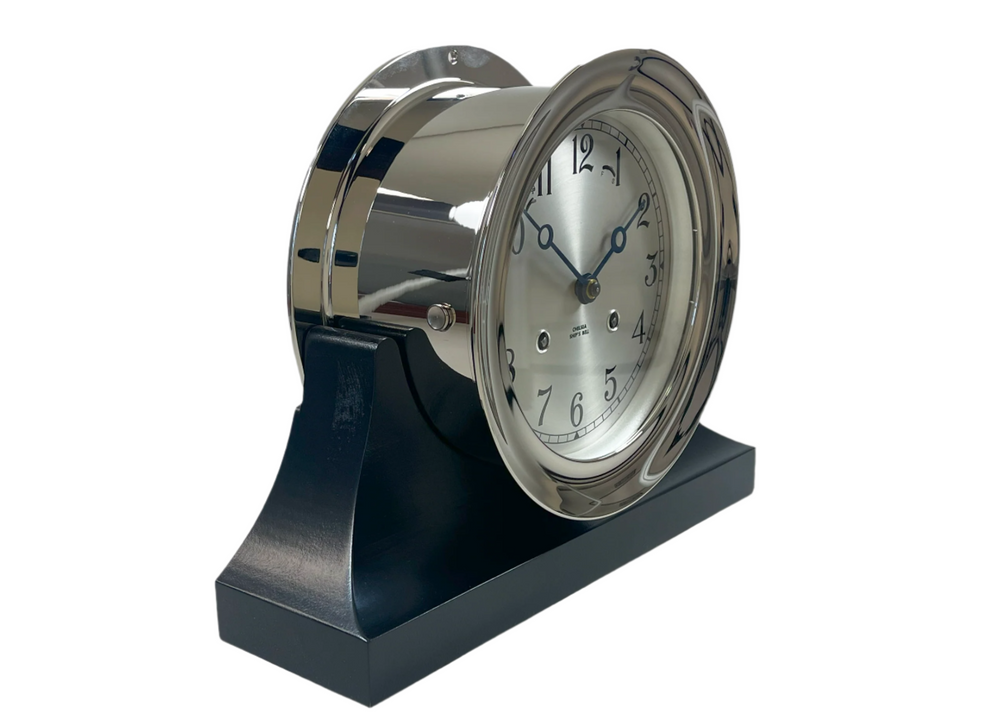 The watch officer struck the ship’s bell every half hour to apprise the crew of the time. A single bell denoted the end of the first half hour and one bell was added each half-hour. Eight bells therefore signaled the end of each four-hour watch. Like centuries of seafarers, you’ll soon know the time when the clock chimes, even if you cannot see it.