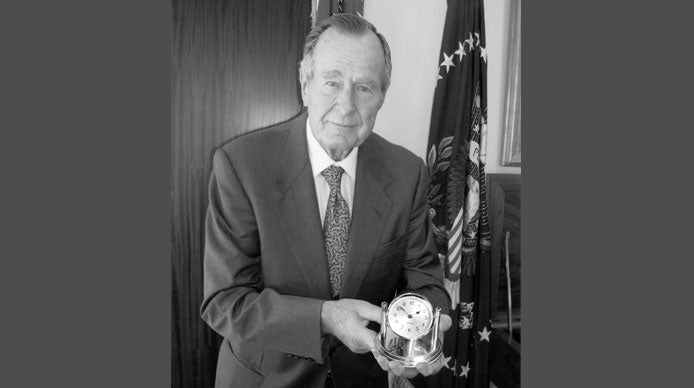 2008: George H.W. Bush holding a Chelsea Dartmouth.