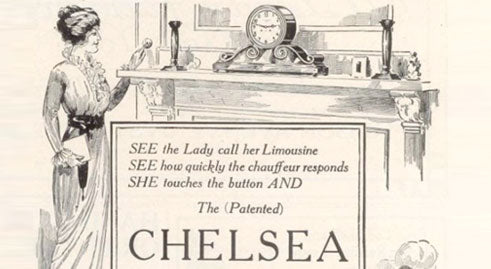 Chelsea brand begins to gain recognition in the market as innovative clock designs are patented and introduced, relationships with distributors are formed and markeding via print advertisments and catalogs emerge. By 1905 Chelsea had established distribution in every major American city.