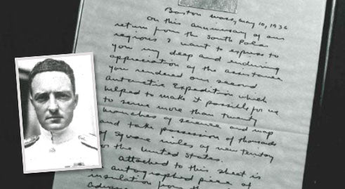 Thank you from Admiral Byrd for clocks used on South Pole expedition.