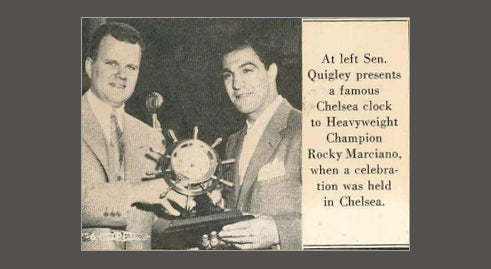 A Chelsea Mariner is presented to Boxing Champion Rocky Marciano.