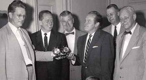 Bob Hope accepts a Chelsea award for his humanitarian efforts.