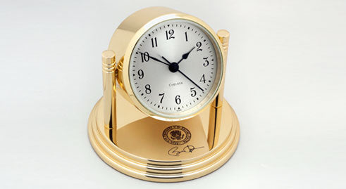 In keeping with Chelsea Clock’s long presidential history, the prestigious journal White House History Quarterly featured Chelsea Clock. The theme of the issue is “As Time Goes By: Historic Moments in The Life of The White House.” One of our instantly recognizable clocks is prominently displayed on the cover. This clock was custom made for the White House. Chelsea craftsmen worked closely with White House designers to create this special clock to hang above the entrance to the First Family’s living quarters.